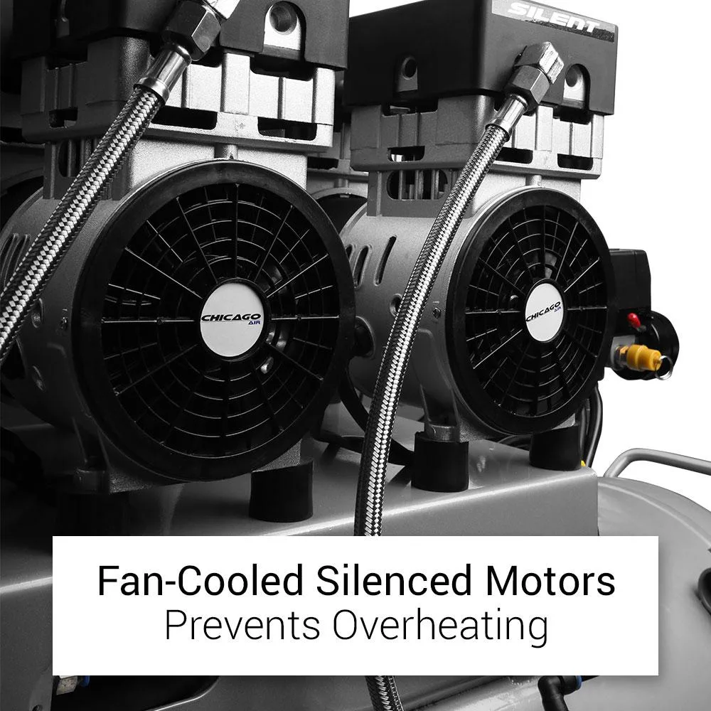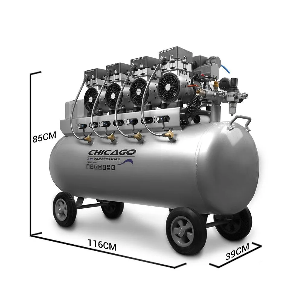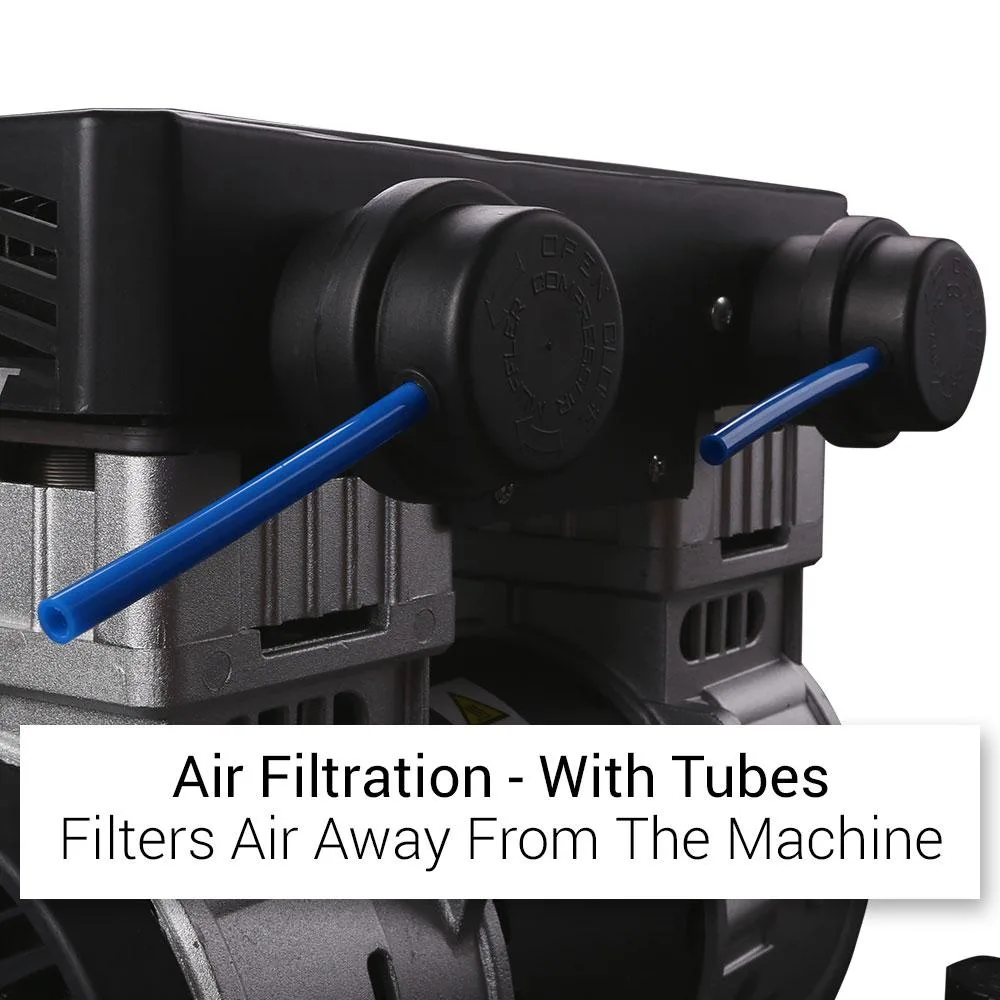 Dual Handled 150 litre tank design. At 105kg dry weight comes with with solid wheels it is easy to transport on the job. Critical for a unit of this size. High Durability Steel Tank. Minimum footprint wheeled design eliminates rust marks on driveways and other surfaces. Fully automatic on-off motor control and built-in overload protection 4 durable 1.1 running HP motors produces maximum air flow without cutout. Perfect to run any pneumatic application you can throw at it